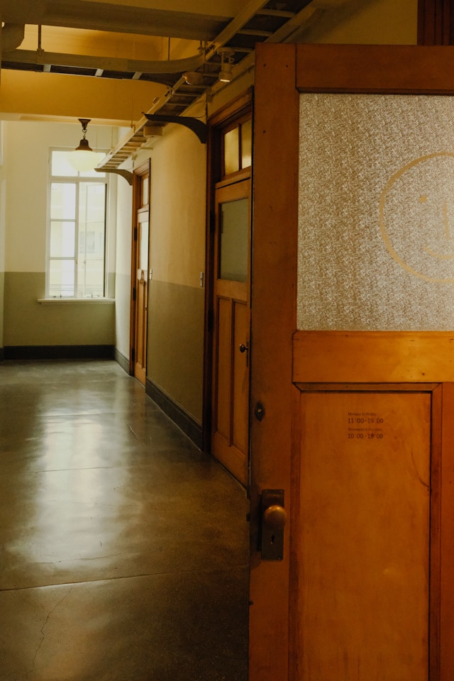 皆川明在京都的旗舰店坐落在一个很有历史感的建筑里面,我站在里面有一种非常熟悉的感觉。想起来跟大连的一些日本建筑有类似的调性,好像一下穿越到了大连中山医院那些长长的走廊和楼梯间里。